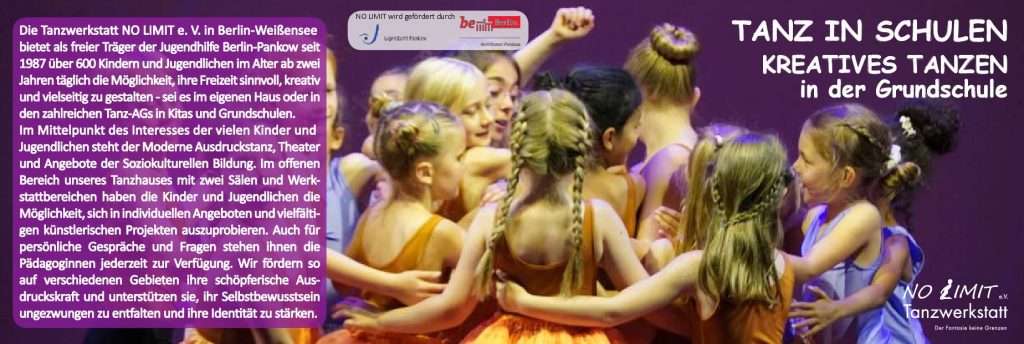 Die Tanzpädagoginnen der Tanzwerkstatt NO LIMIT e.V. tanzen derzeit mit den Kita-Kindern und Grundschüler:innen in:
